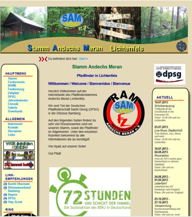 Das Design der Seite ist in die Jahre gekommen. Auf mobilen Geräten ist die Seite gar nicht nutzbar und unpraktisch. Es musste eine Lösung her, die für alle digitalen Medien geeignet ist. Ich habe vorgeschlagen, dass Template der DPSG zu nehmen und an unsere Farben anzupassen. Die Inhalte der festen Seiten administriere ich. News und Termine können alle Leiter einstellen.