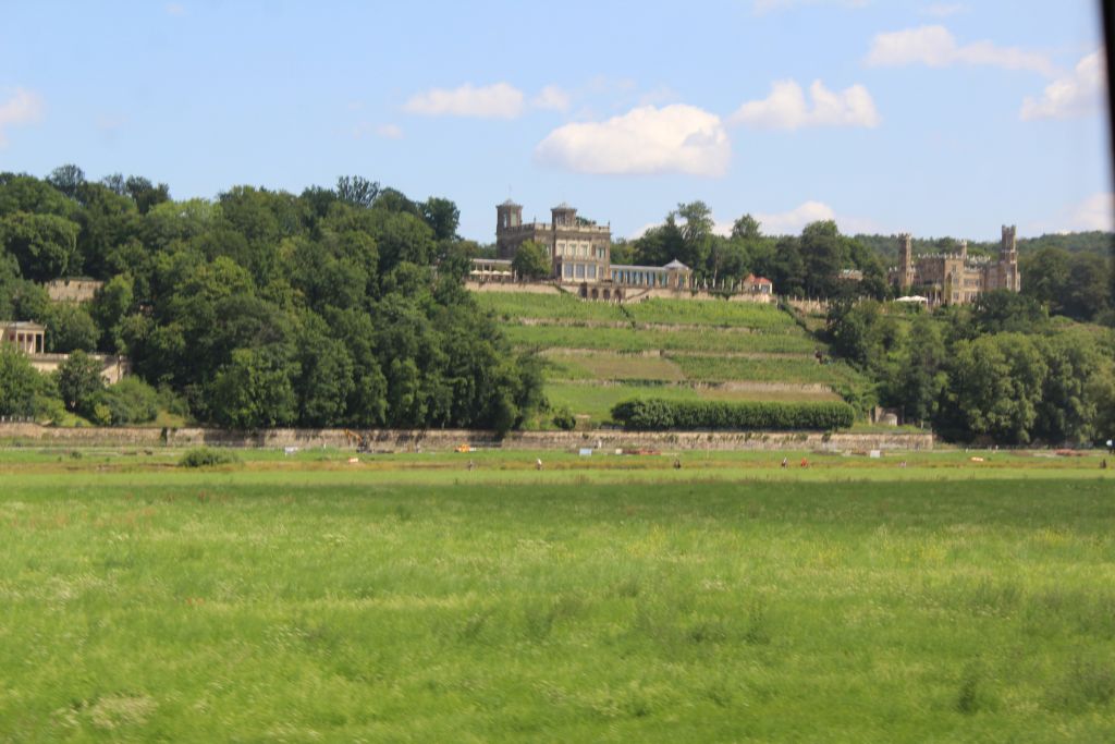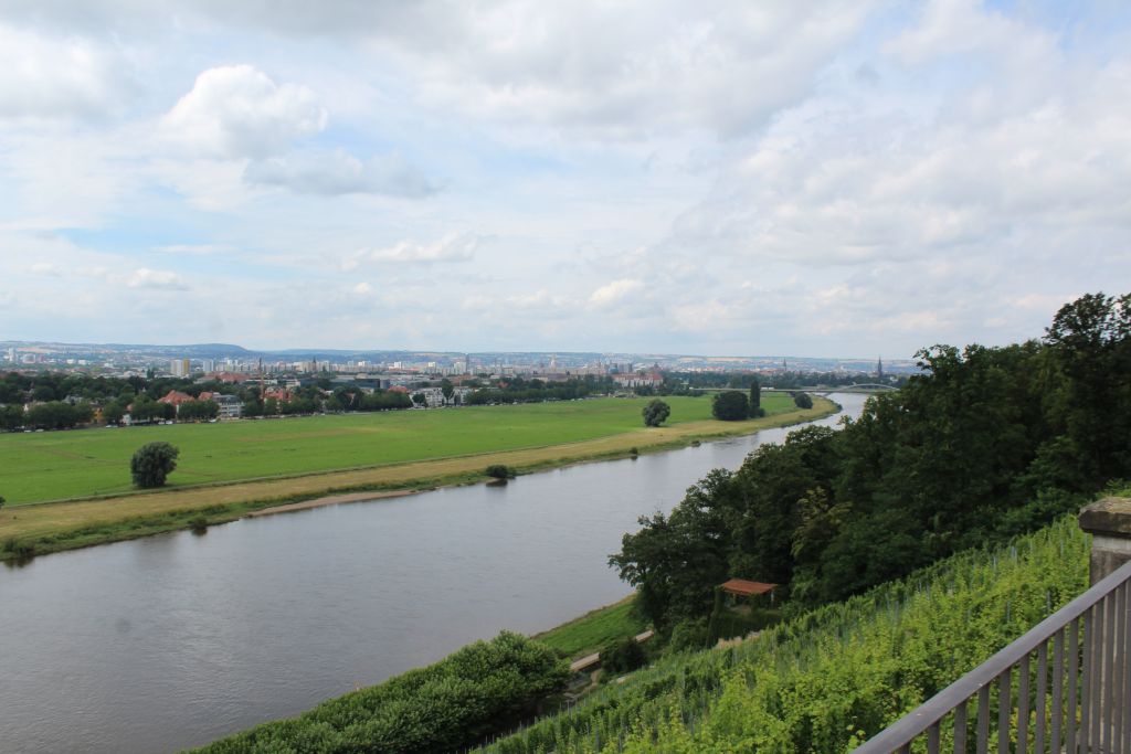 Sind zur Terrasse gelaufen und genossen den Blick auf die Elbe und Dresden.