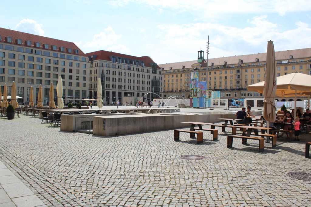 Altmarkt kurzer Stopp und ausruhen. Auf der anderen Straßenseite beim Kulturpalast saßen wir einige Minuten.