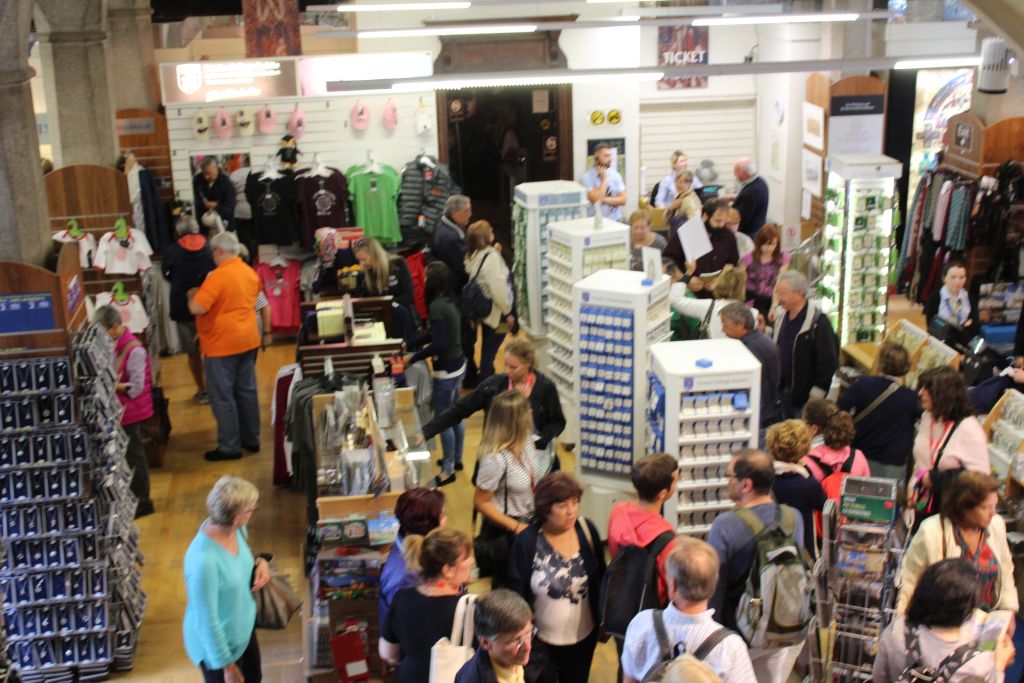 Somit gibt es Eintrittspreise und einen Souvenierstand in der Kirche.