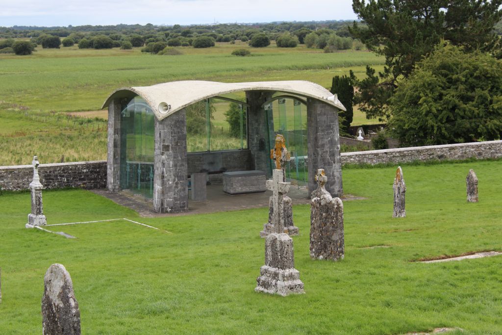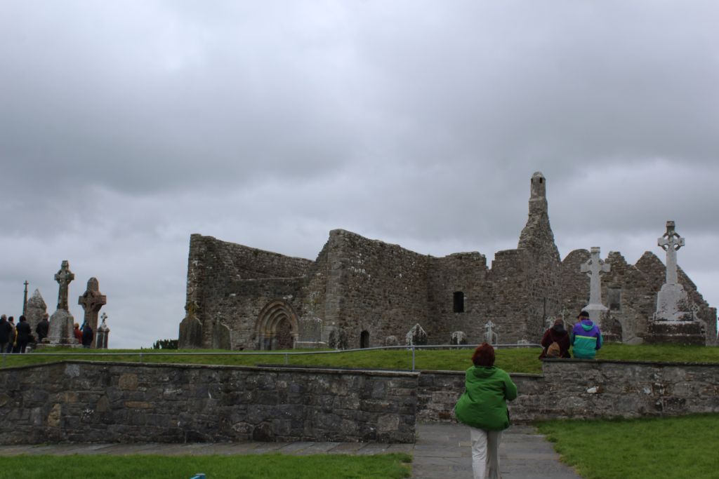 Schließlich verließen wir Dublin. Gegen 14:30 Uhr denke ich war es, als wir in Clonmacnoise ankamen. Dieses Kloster ist das älteste Kloster in Irland. Von hier aus begann der Siegeszug des Christentums in Irland, England, Schottland und sogar auf dem Festland. Mönche gelangten nach Deutschland und sogar bis nach Wien in Österreich. Es gab einen Film auf Deutsch und dann eine kurze Führung durch die heutigen Ruinen.