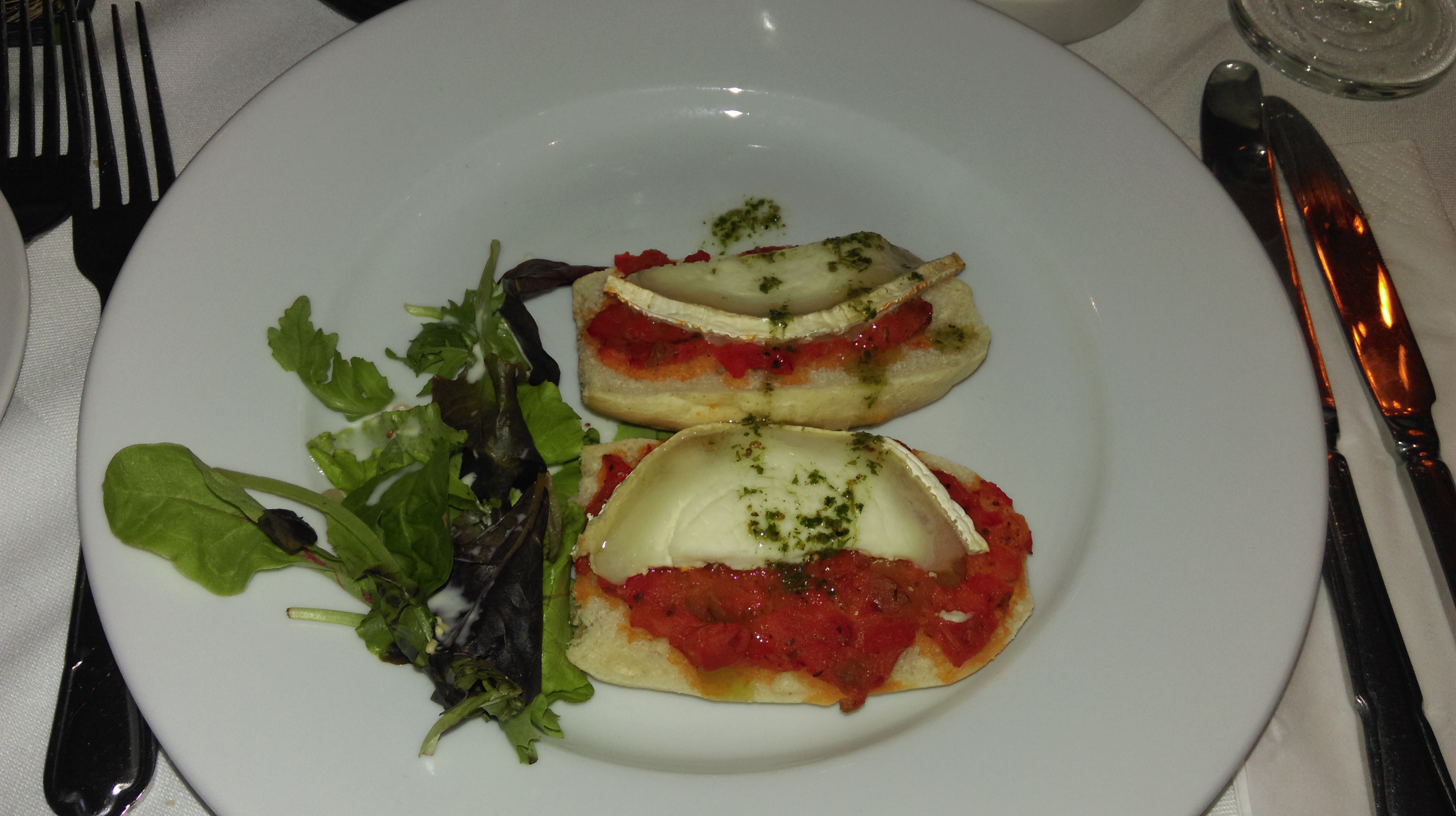 Vorspeise: Suppe des Tages oder Brie Käse Schinkensalat