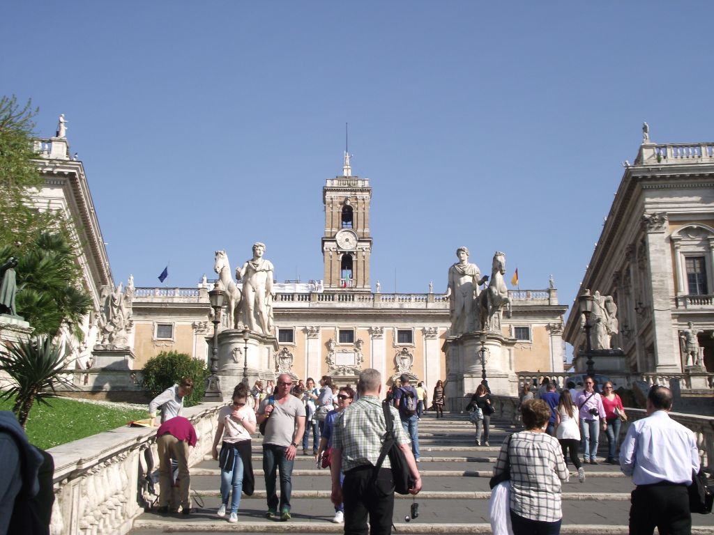 Zum Kapitol steigt man auf der großen Freitreppe hinauf. Wurde nach dem Plan von Michelangelos 1536 angelegt.