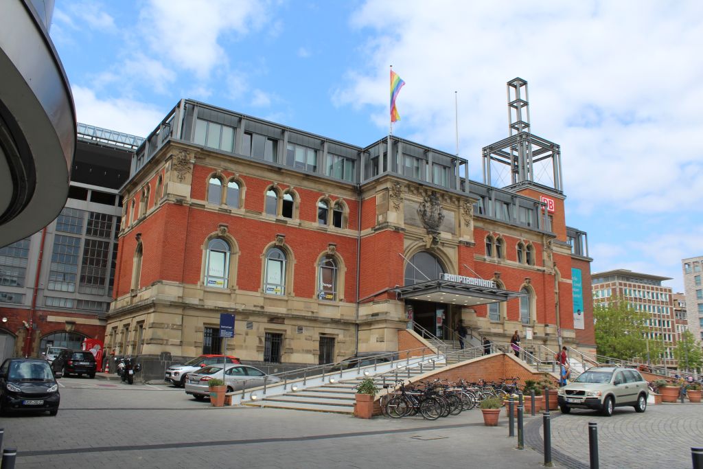 Der Hauptbahnhof in Kiel. Dahinter ist eine sehr große Einkaufspassage.