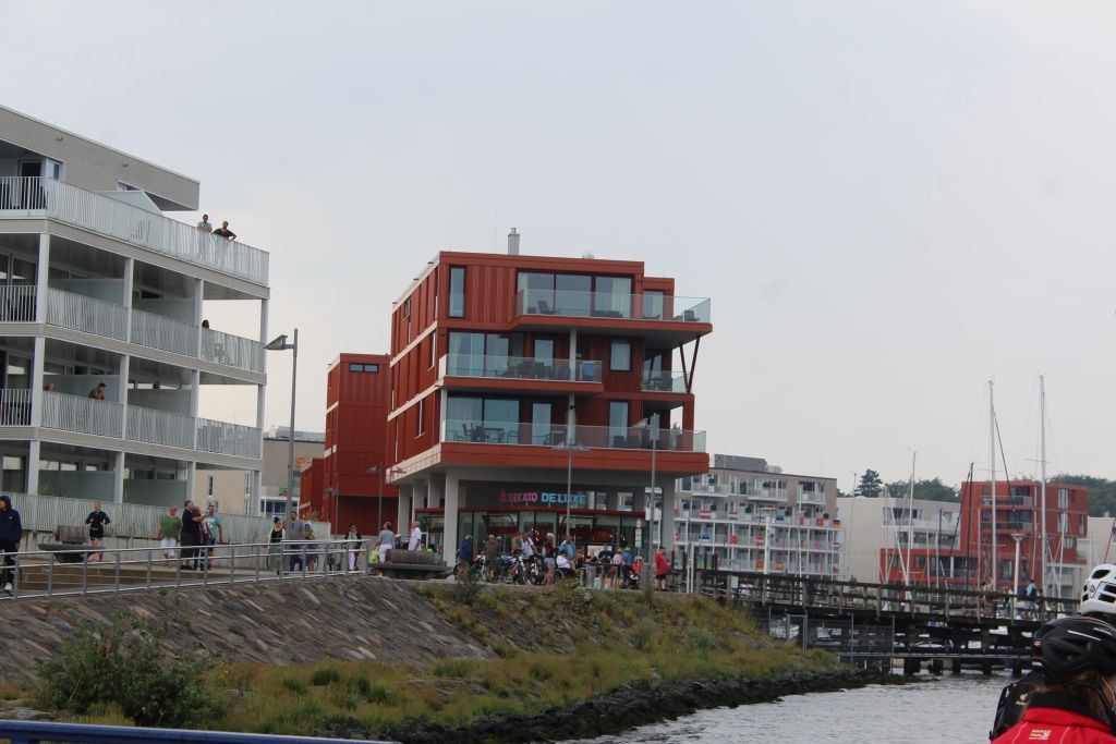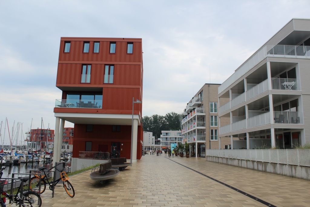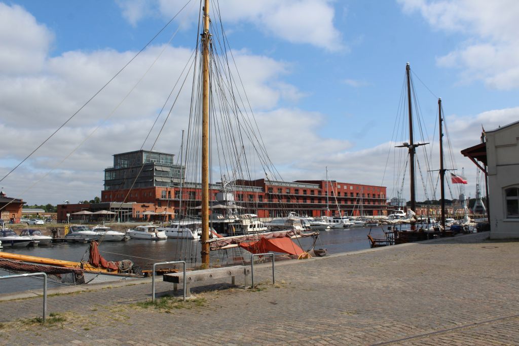 Der Weg führt uns am Hafen entlang. Vorbei am neuen Rathaus zur Fußgängerzone.